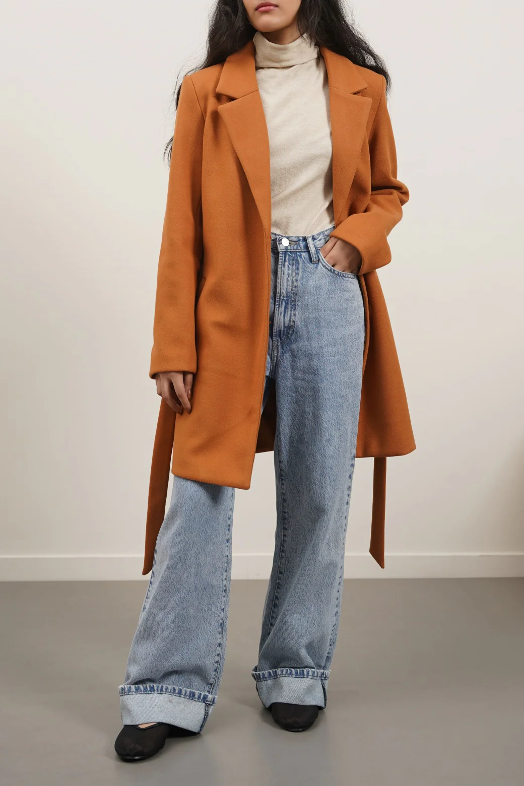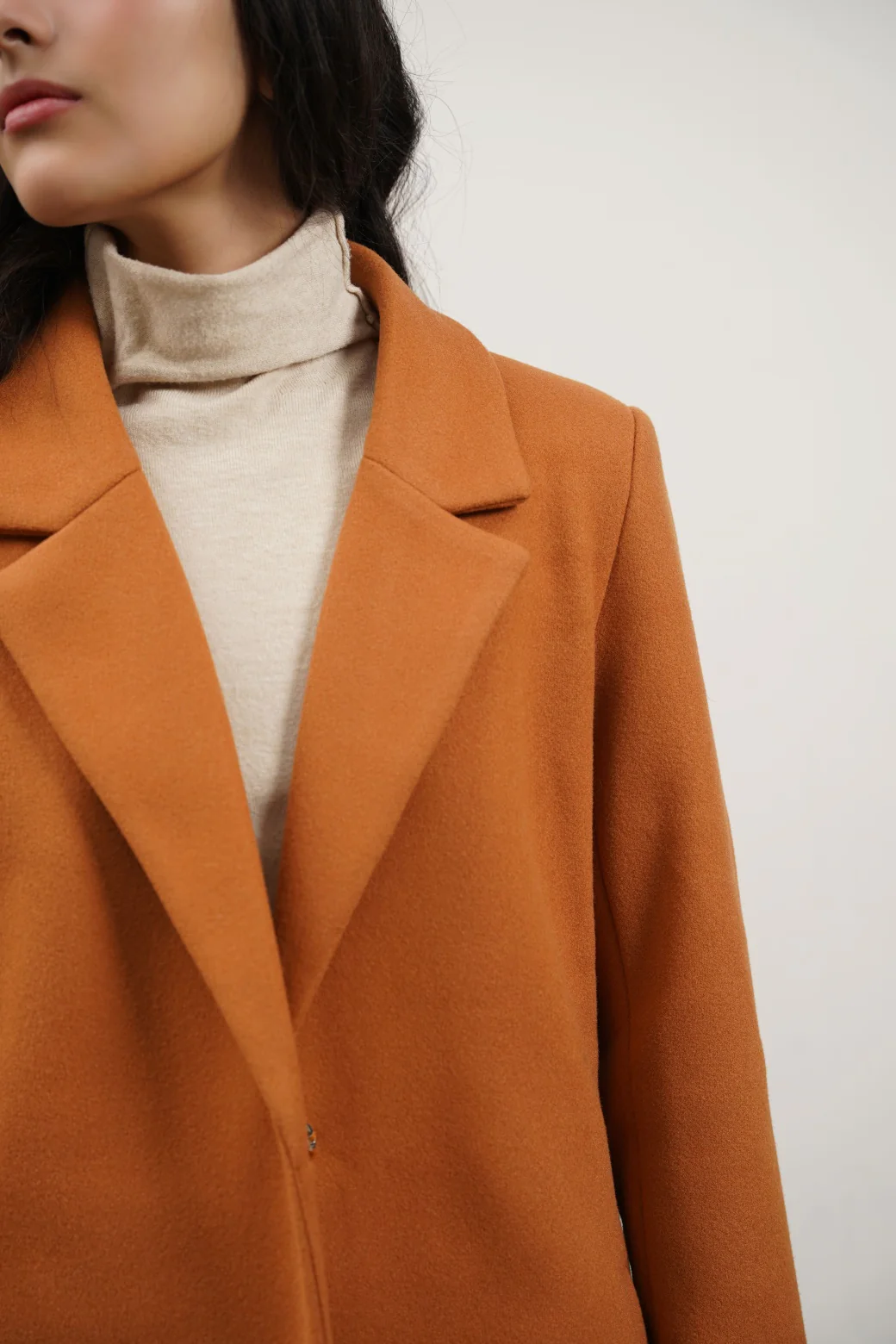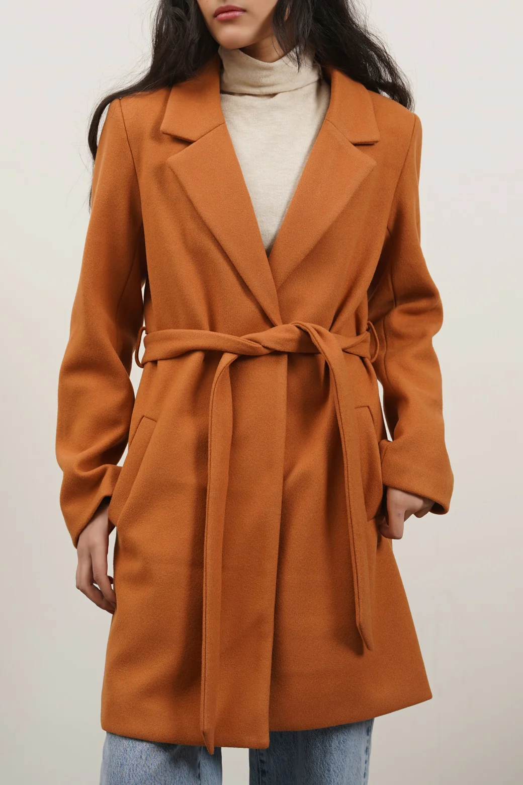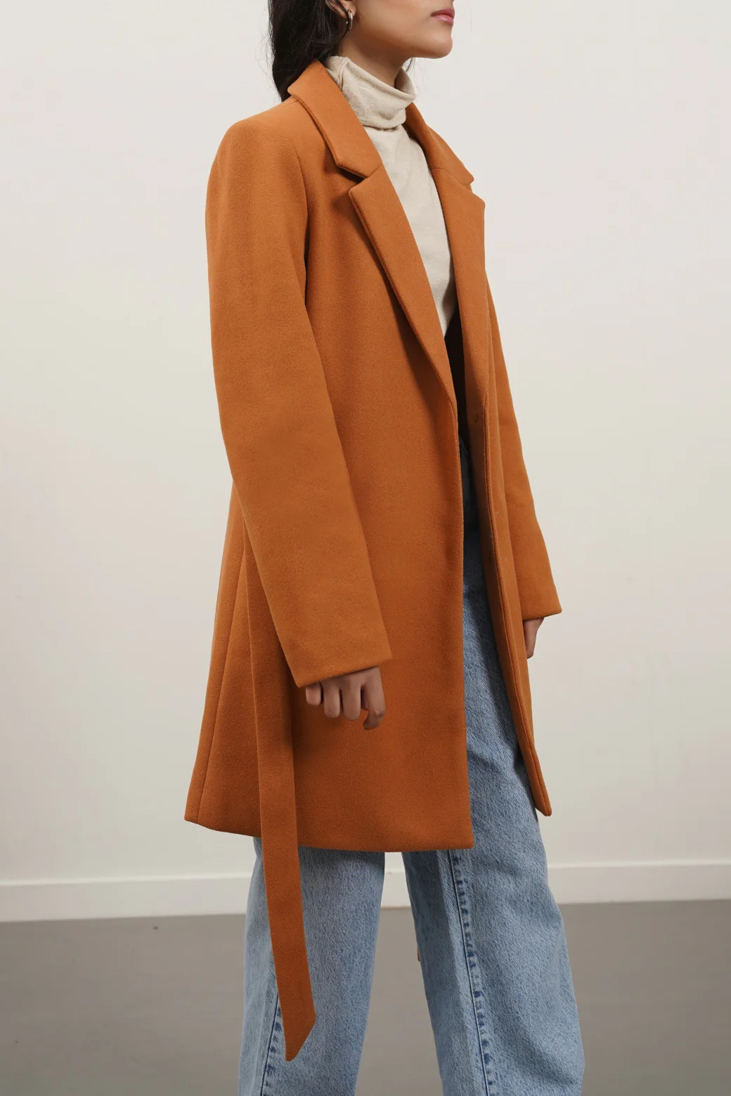 Design detail: Wooly coat with belt that’s a stylish wardrobe essential.